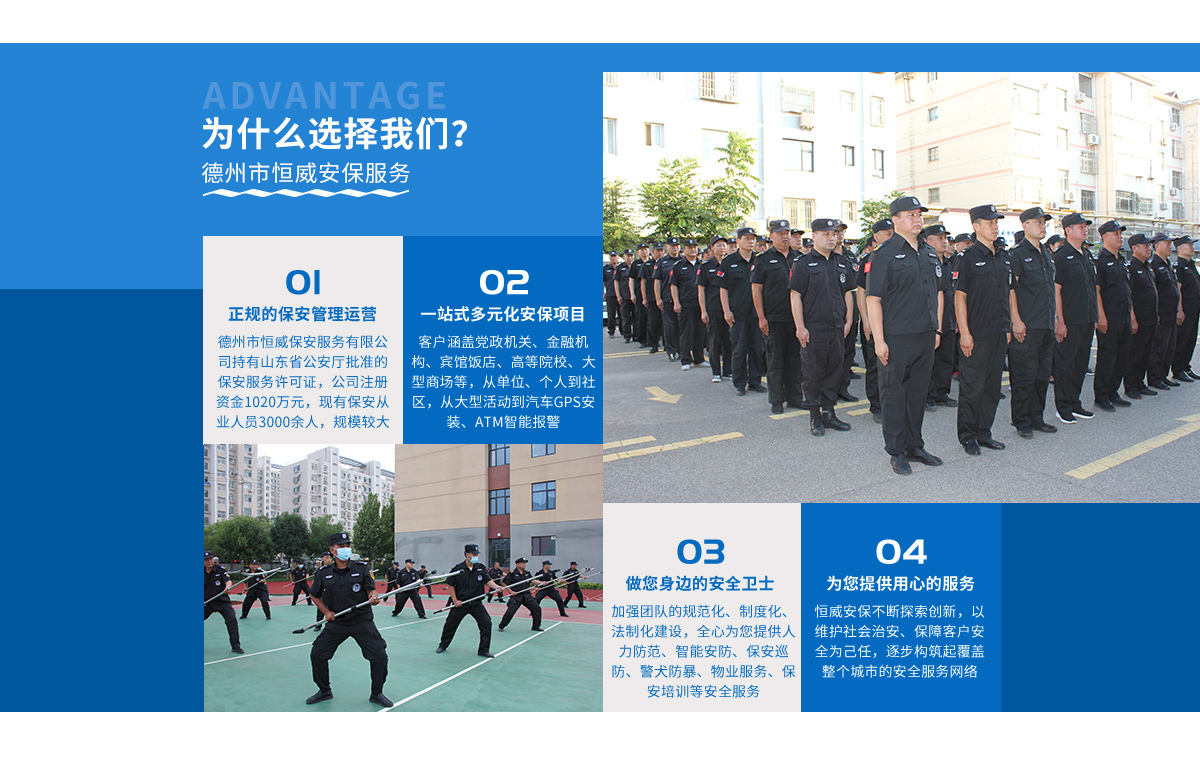 - 德州市恒威安保服務有限公司,注冊資金1020萬元。是經山東省公安廳批準、德州市工商管理局登記注冊、具有獨立法人資格的專業保安服務公司,下設10個職能科室和業務部...